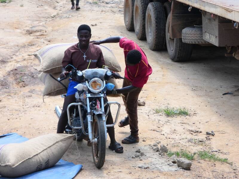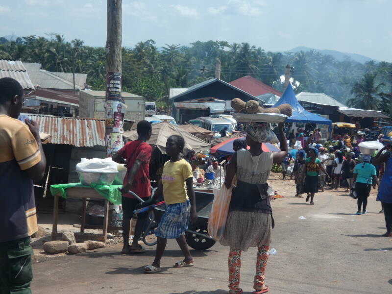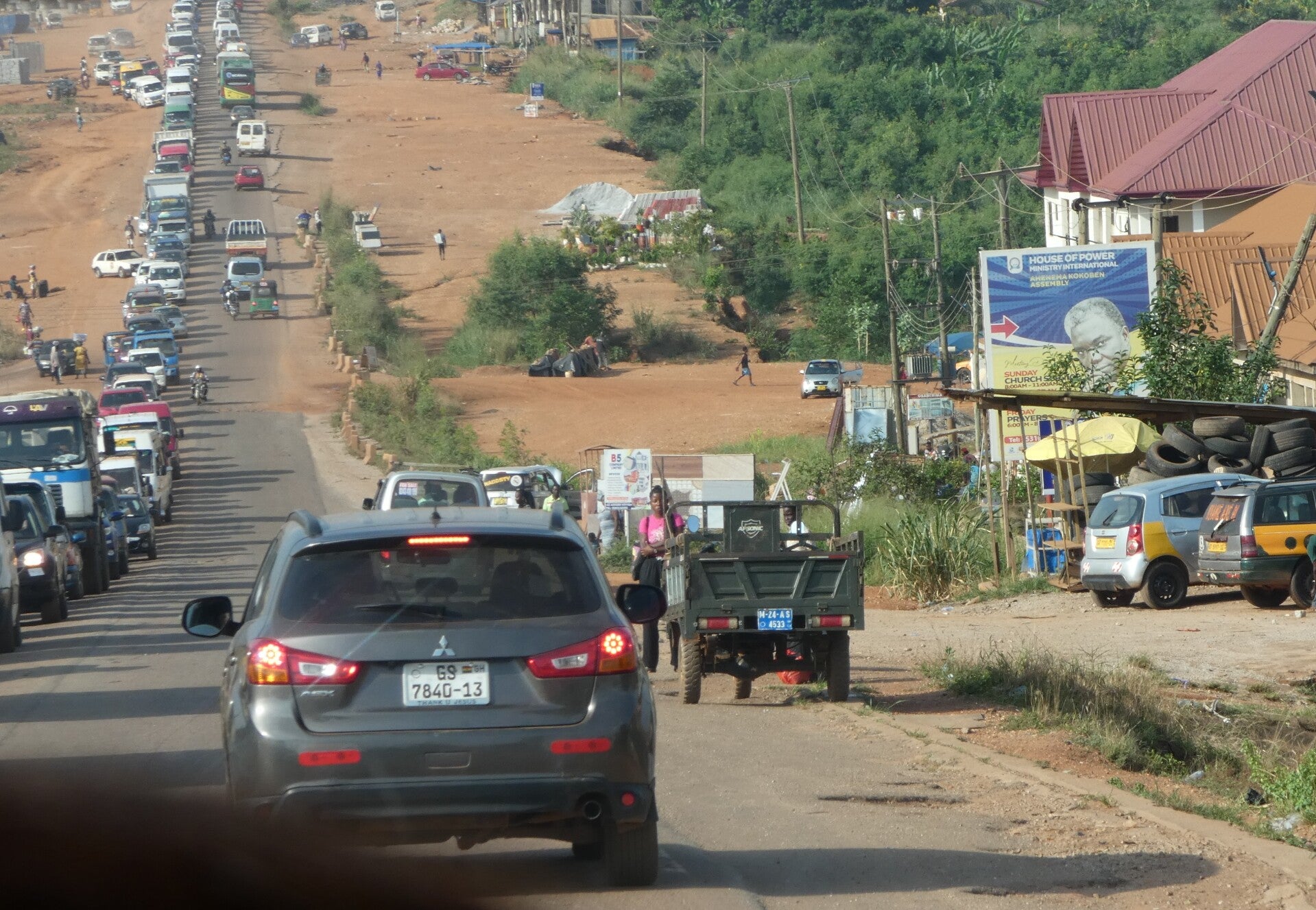 The day started as usual with a humid 30c. Driving out of Kumasi, the traffic was heavy as we have now come to expect in Ghana. Minivans packed with people going to work, school kids in their smart uniforms, trucks, tuk tuks, pedestrians, sellers and stalls, all packed the bumpy dusty road out of the city. We saw a few individual labourers with spades in hand in the middle of the road, ostensibly digging the road, but actually asking for money from vehicles as they went past. We also passed through a few random police and army checkpoints but were not stopped