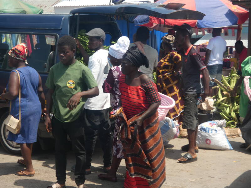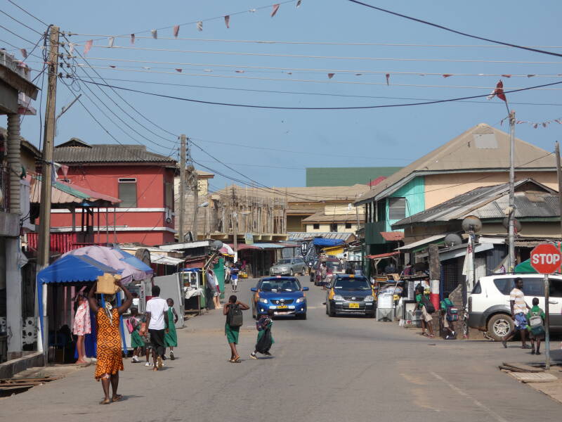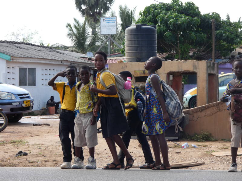 The town of Elmina is dominated by the whitewashed St George’s (Elmina) Castle, which dates back to the 15th century, and was built by the Portugese. The fort is a rather sombre place when you know that this is where slaves were held awaiting transportation to the new world, and the cells which they were held in still remain. The town has colonial buildings built by the Portuguese, Dutch and English. We arrived just at the time that the school kids were walking home. They were keen to chat and had good English.