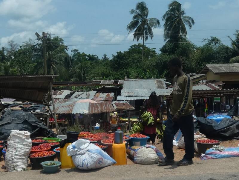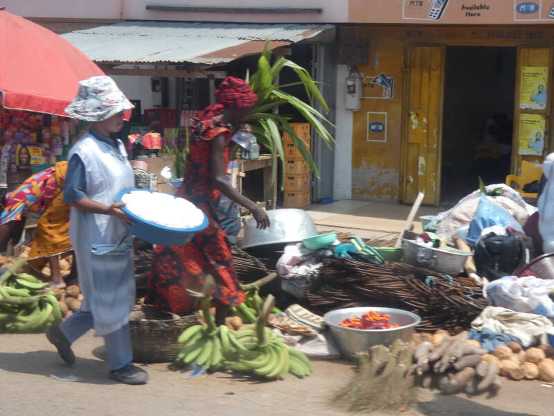The road today was a lot better than we have been used so far in Ghana. Out of the city passing through the rural areas it was well tarmarced and it was only when we passed through the bigger villages, that we were slowed down a bit.