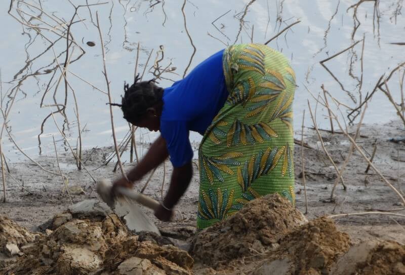 Selling fish on the river Sassanga bridge