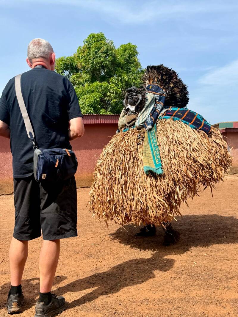 Today we started off at 7.30am by picking up a 4 wheel drive. We are driving for about two hours into the jungle to visit an isolated settlement of the Guere tribe. We are hoping to see their mask dances and if lucky, a dance of the ‘jongleurs’, a rare performance involving initiated women with white painted faces.