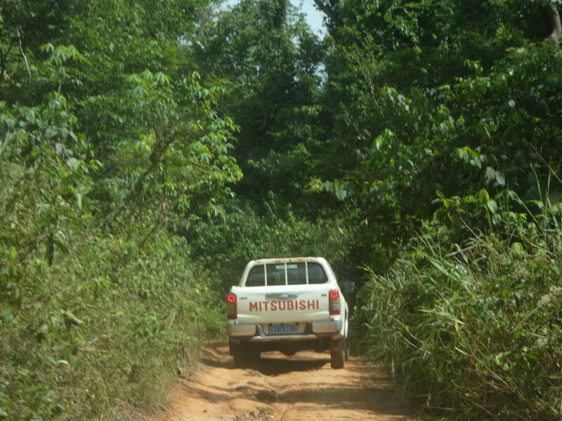 The road is not passable during the rainy season, and in fact it is so rutted in places, that despite very little rain, there are still large puddles across the road that make it very slippy. The road for the first hour was wide enough for two vehicles to pass, but during the second half of the journey, we turned onto a road, that was less a road, and more a wide footpath, with the undergrowth scraping the vehicles on both sides.