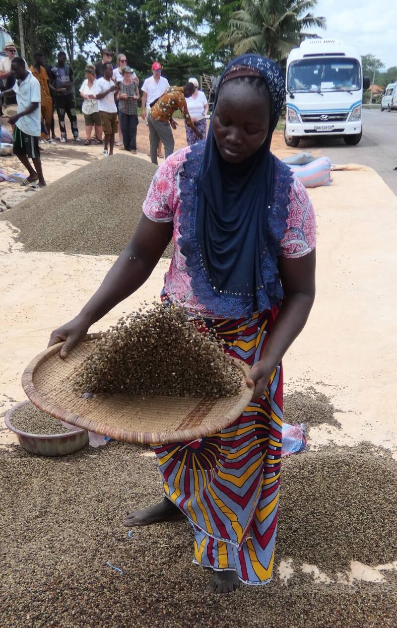 We then drove further on to the last town before the border, Danane, to get some bread etc as for the rest of the journey, right into Liberia, there is nothing. Stopped briefly to see some women sorting coffee at the road side.