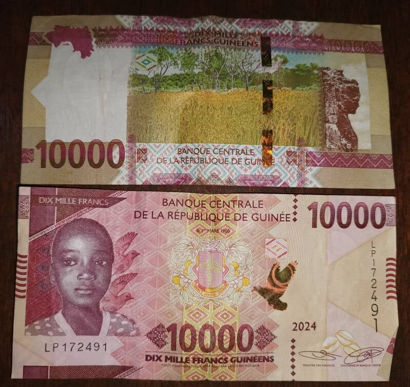 Guinea, officially the Republic of Guinea, has borders with six countries : Guinea-Bissau, Senegal, Mali, Cote d’Ivoire, Sierra Leone and Liberia. It also has, like all the countries I have visited on this trip, an Atlantic Ocean coast line. It is about the same size as the UK, but only has a population of 14 million. The official language is French, it having been a French colony from the 1890s, until independence in 1958. In the last few years there have been multiple periods of unrest in the country, and the government of the country is currently via the military following a military coup in 2021.