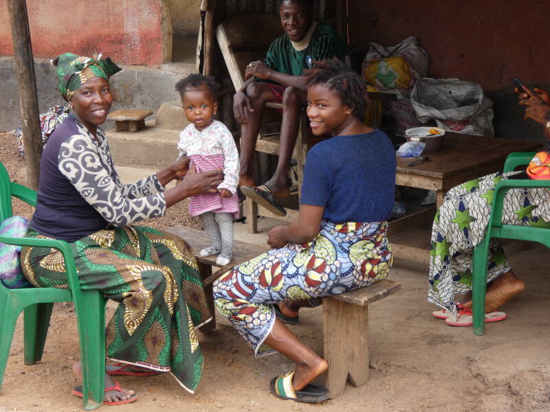 We eventually arrived at the hotel, where we had lunch. I went for a short walk near the hotel and found a barber, so had another haircut. As I was walking back, a family cooking a meal, beckoned me over, and wanted me to take their photos, and have a photo taken with them. They did not speak French or English, so it was all a bit difficult, but they were very friendly and did not want money. Then a few yards later an old lady of about 90 beckoned me over. She asked me to sit down and we tried to have a conversation but the language barrier beat us again. She kept grasping my hand, and peculiarly, rubbing the leg of my shorts! Anyway it was all very friendly, and we parted the best of friends!