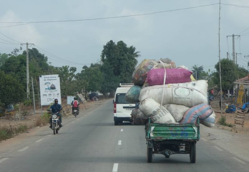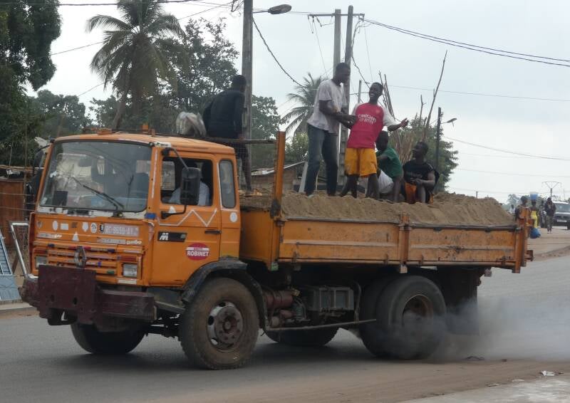 There is a trend here in West Africa for people to ride on top of vehicles, even on top of stuff that is piled up high on top of vehicles.