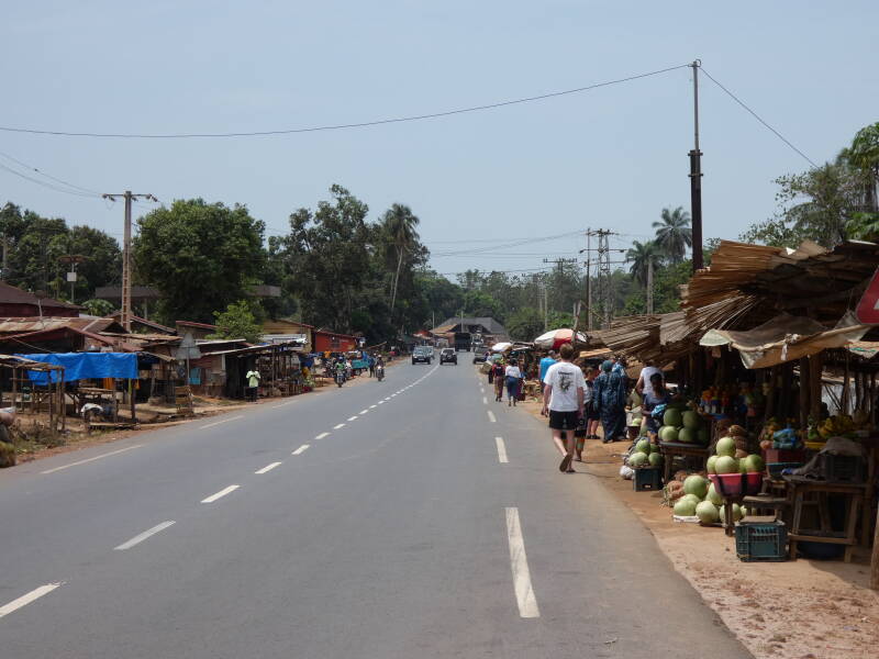 There seems to be more cars on the road in Guinea compared with the last two or three countries. We also passed by some factories which we had not seen before except in the cities. Although Guinea is not as poor as Liberia and Sierra Leone overall, there does seem to be a lot of people living in very poor conditions. For a long while one small town merged into another small town with no break.