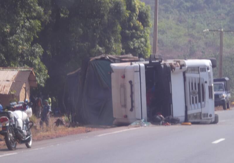 At about 9am we hit the road again to head into the mountains in central Guinea. We have picked up some 4WDs as the roads are apparently difficult. As we were leaving the town of Kindia, there were trucks everywhere all lined up, but I could not work out whether they were heading out in convoy or what.
