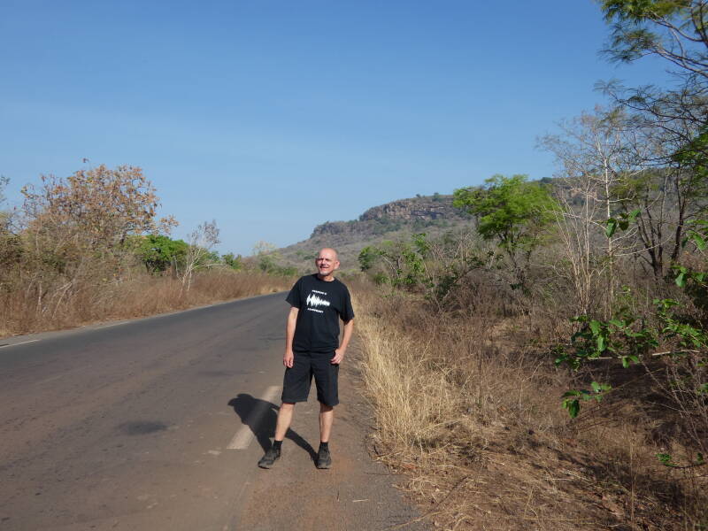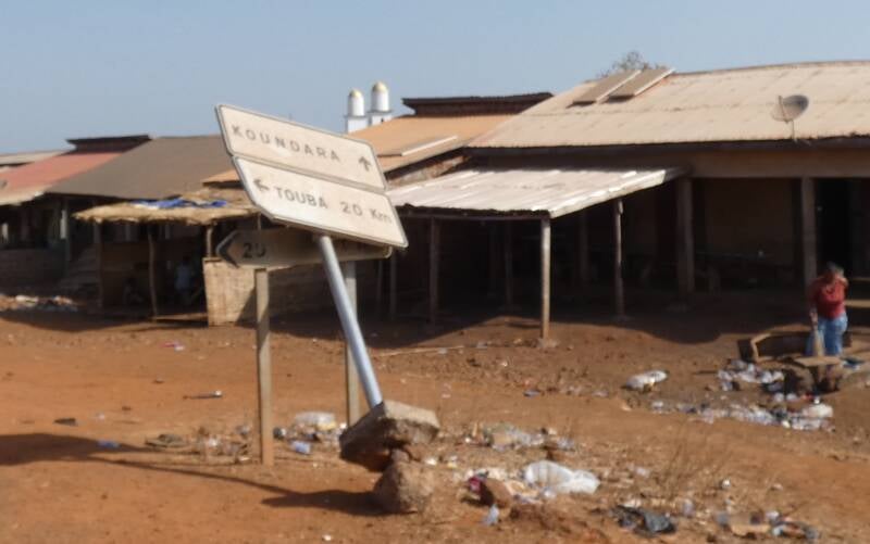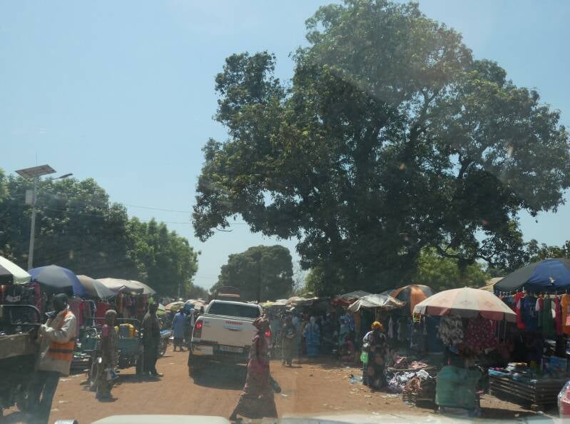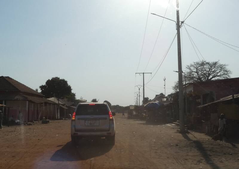 A few miles down the road, we came to a large village, where we changed the deflated tyre, and swapped over into another car, due to the fuel leak. This was only possible because last night we had had an unexpected visit by the guy who runs the trip company out here, who had his own personal car, and so had some space. He is travelling on to Senegal today.