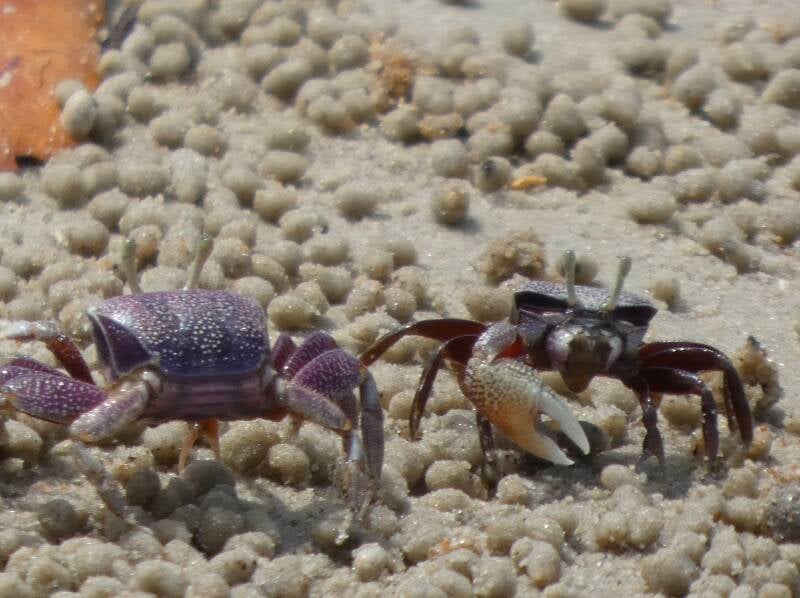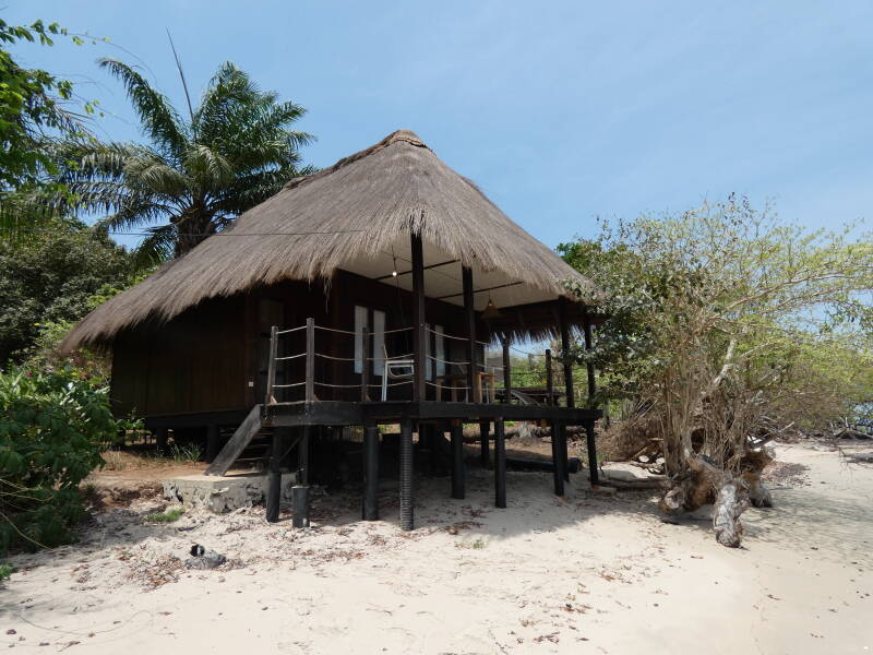 The accommodation consists of large thatched villas right on the edge of the beach and a bar and restaurant. We had a cocktail and some lunch, then a couple of us went for a short walk along the coast and through the forest. Lots of bird life here, and crabs! This really is a bit of a paradise island, and although it is very hot there is a cooling breeze.