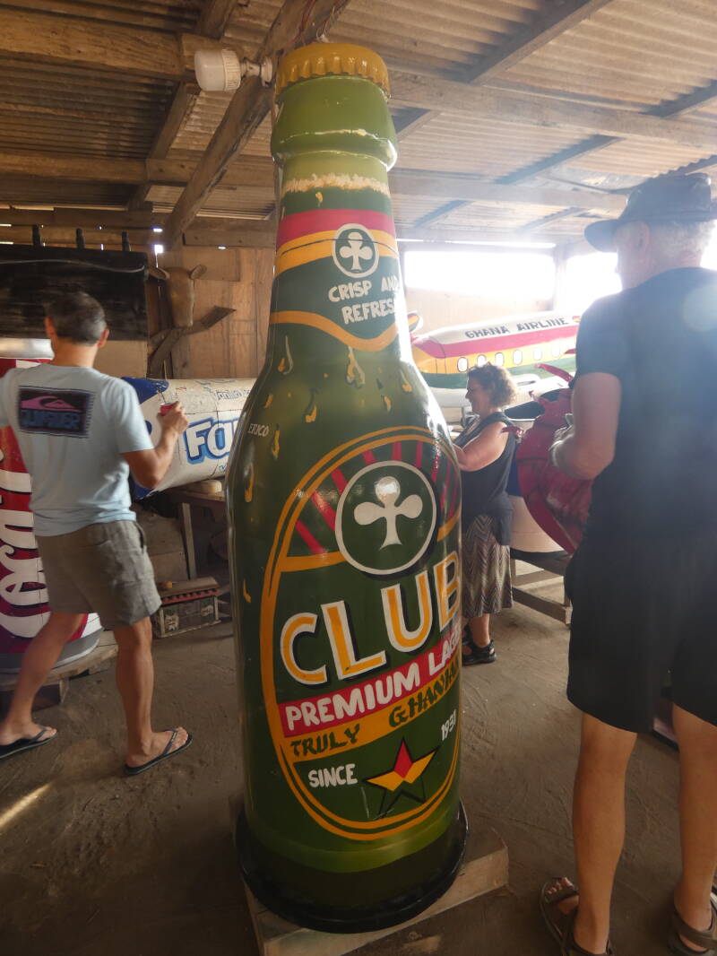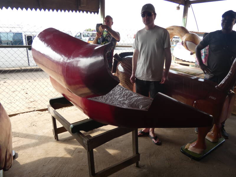 Our first stop was at a coffin maker. There is a tradition of making exotic coffins based on the deceased occupation or interests in life. So there were coffins shaped like planes for pilots, shoes for runners, bottles for bar owners chillies for chefs, crabs for fishermen etc.