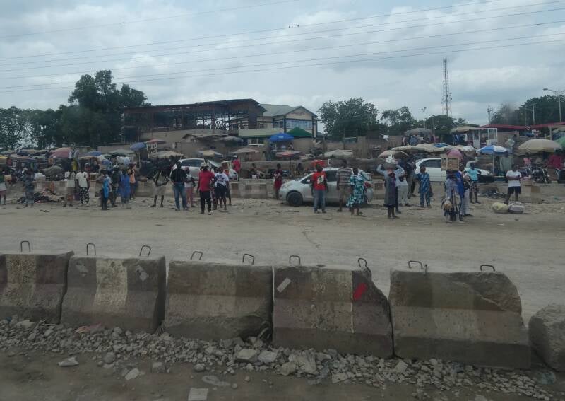 Market in the middle of the roadworks